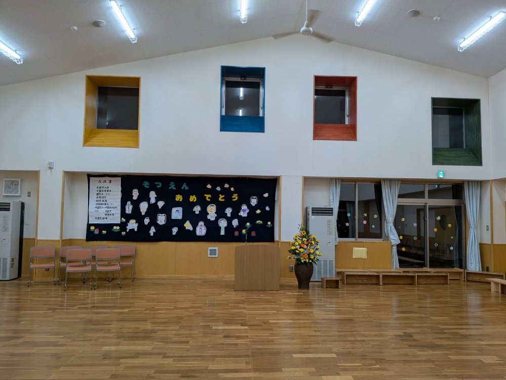 たくさん遊んだホールでの卒園式です